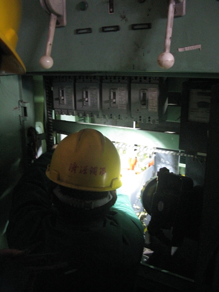 21日早上,新總斷路器到位,由動力廠負責更換,我公司協(xié)作,經(jīng)過3個小時共同努力,中午11時,大功率總斷路器安裝結(jié)束,系統(tǒng)恢復正常供電。