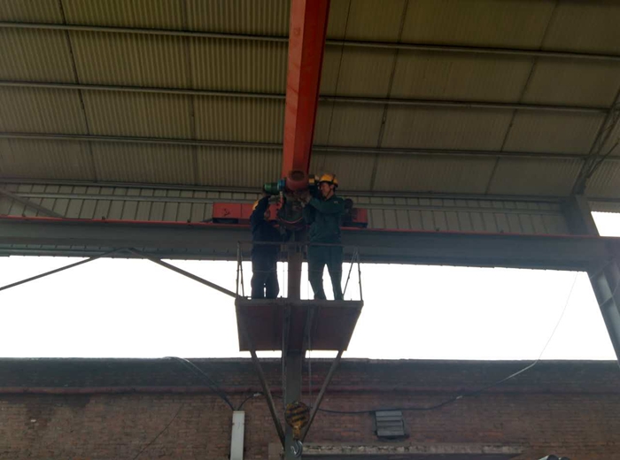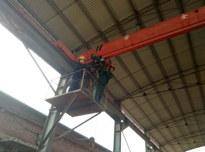 25號(hào)下午剛上班,連鑄車間成品西庫(kù)電葫蘆鋼絲繩被絞卡住,無(wú)法起吊。維修電工立即趕到現(xiàn)場(chǎng),上到天車平臺(tái)搶修。王茂榮副總經(jīng)理趕到現(xiàn)場(chǎng)指揮。