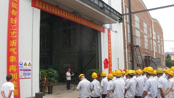 9:58,在歡快的音樂和喜慶的鞭炮聲中,周總宣布河南國泰機(jī)械鑄造有限公司環(huán)保技改工程勝利竣工投產(chǎn),并和??偣餐议_了竣工投產(chǎn)的紅幕。