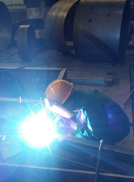在班長(zhǎng)劉學(xué)斌的帶領(lǐng)下,鉗工班全體成員每天加班加點(diǎn)趕活。正值數(shù)九寒天,室外溫度已到零下七度以下,室內(nèi)現(xiàn)場(chǎng)大家干的卻是熱火朝天。焊光閃爍,焊花飛揚(yáng),多臺(tái)焊機(jī)滿負(fù)荷工作;作為第一道下料工序的等離子氣割采用兩班運(yùn)行,人停車不停,深夜12點(diǎn)依然照常運(yùn)轉(zhuǎn),為各種工件的按時(shí)完成做足準(zhǔn)備。