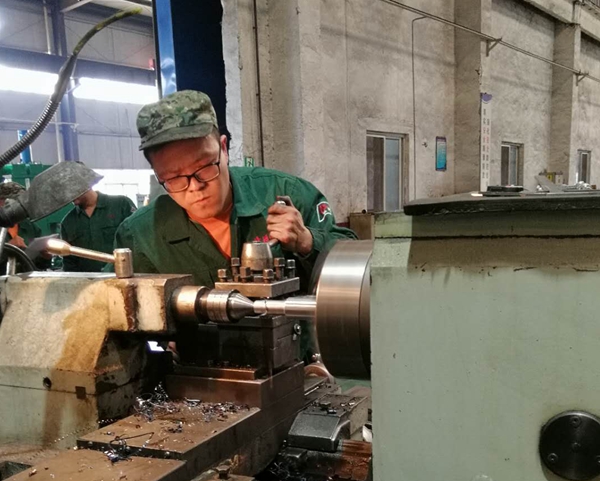 參賽選手逐一上場,按比賽規(guī)則進(jìn)行操作前的準(zhǔn)備、所需刀具刃磨、工件加工、加工結(jié)束后的衛(wèi)生收尾等。由公司副經(jīng)理王茂榮、盧選民,車間主任王朝陽、黨志明等組成的評委團(tuán),全程監(jiān)督選手安全操作程序,嚴(yán)格檢驗工件尺寸精確度和光潔度,確認(rèn)工件加工時間等,依照評分標(biāo)準(zhǔn)依次為參賽隊員打分,并做出綜合點評。