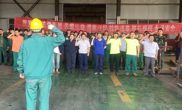 首先每天早上雷打不動(dòng)的安全宣誓已經(jīng)堅(jiān)持了一年多,每天的宣誓都警示大家把自己的安全和家庭聯(lián)系起來,從心底敬畏安全,遵守每一條規(guī)章制度,真正做到安安全全上班高高興興回家。